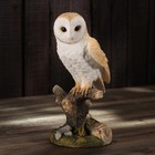 Barn Owl Vigilantly Perched On Tree Stump Statue
