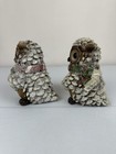 Pair Of Small 4-1/2" Tall White Fluffy Snowy Owl Friends With Amber Eyes