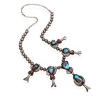 Vintage Southwest Navajo Sterling Silver Turquoise & Coral Squash-style Necklace
