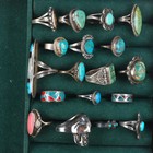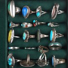 Sz3-12 Vintage Navajo/zuni/southwestern Style Sterling Silver Turquoise Ring Lot