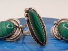 Vtg Navajo Sterling Silver Malachite Ring & Earrings Set 17g Sz 6.5 Leaf Design