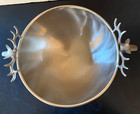 Vtg Silver Tone Stag Reindeer Head Handles 7x4.75" Serving Bowl