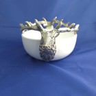 White Ceramic Bowl With Silver Metal Stag Deer Head Handles 6.5" Diameter