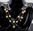 Double Chain Beaded Necklace In Sterling Silver 3 Tone Adjustable 17 - 19"in