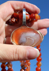 Carnelian And Grey Agate Pendant. Set In A Vintage Sterling Silver-plated Spoon