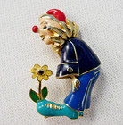 Super Cute Vintage Enamel Clown Pin Brooch W/ Flower Gold Tone Figural