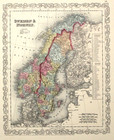 Antique Map Of Sweden And Norway, Free Shipping, Good For Framing