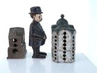C1910 Antique Cast Iron Bank Collection Building And Policeman With Billy Club