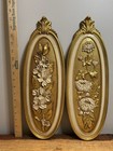 Vintage Pair Mcm Syroco Gold Colored Flower Wall Hanging Decor