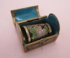Brass With Enamel Treasure Chest And Thimble Vintage Miniature Trunk Cloisonne