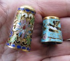 Vintage Chinese Cloisonné Thimbles - Lot Of 2 - Floral Enamel On Brass