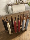 Wood Quills Threaded Bobbins Sewing Vtg Antique 9" Burgandy Folk Farmhouse Gift