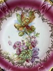 Antique Three Crown 10 3/8" Floral Cake Plate Germany Gold Trim Red Porcelain