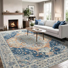 Vintage Distressed 8x10 Area Rug - Soft, Washable, Water-repellent Blue/orange