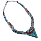 Multi-color Tibetan Turquoise Coral Necklace Unique Boho Tribal Jewelry Necklace