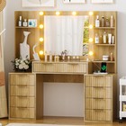 Ktaxon Large Makeup Vanity Table Set With 9 Drawers, Fluted Texture, Lighted