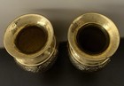Set Of Two Vintage Mid Century Lacquered Brass 10” Vases With Floral Design