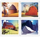 Sheet Of 20 Usps Post Card Stamps Featuring Barns