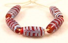 5 Old Venetian Glass Red Feather Lampwork Trade Beads "a"
