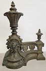 Antique Victorian Era Bronze Pair Fireplace Andirons With Woman Face & Sun Rays