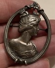 Antique Sterling Silver Brooch Pendant Victorian Woman Cameo Art Nouveau