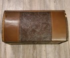 Vtg Storage Wooden Chest Treasure Trunk, Faux Leather Natural Design 10"w 8.5"h