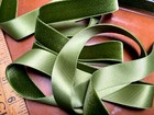 Vintage Rayon Satin Back Velvet Ribbon 1" Moss Green Woven Edge 1yd France
