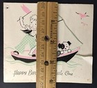 Vintage 1930s 1940s Happy Birthday Little One Card Girl Boy Puppy Sailboat