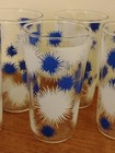 Vintage 1950s Puff Burst Blue & White Glasses Tumblers 5" Mid Century 5 Glasses