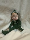 Vintage Kitschy Holland Mold Co Sitting Green & Yellow Porcelain Elf Pixie Fairy