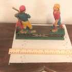 Vintage 50s Baseball Player Cast Iron Mechanical Bank Hometown Battery Possums