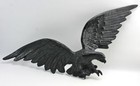 Vtg 12” Black Cast Iron American Eagle W’ Flag Shield Wings Spread Wall Mount