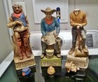 3 Vtg 13" Lionstone Camp Cook Wood Hawk Railroad Engineer Whiskey Decanter Empty