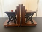 Antique Desk School Daze Wood Cast Iron Enesco Vintage Book End Set