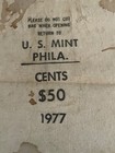 Vintage 1977 Us Mint Philadelphia Bank Canvas Cloth Coin Bag Cents $50 4609