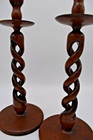 Pair Of Jacobean Revival Barley Twist Tapered Solid Oak Pillar Candle Holders