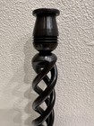 Pair Of Barley Twist Single Pillar Carved Wood Candle Holder. Hand Stained.