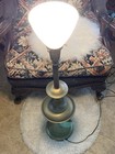 Vtg Mcm 60s Brass W Lion Head Torchiere Lamp W Milk Glass Shade, Imperfect, 35”h