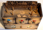 Vintage Hand Painted 4 Drawer Wood Sewing Storage Box - Made In Japan Excellent
