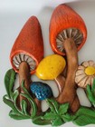 Vintage Chalkware Mushroom Wall Plaque Decor 60s 70s Flowers Mod Kitsch