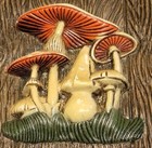 Vintage 70's Hobbyists Ceramic 3d Mushroom Square Wall Hanging Hand Painted