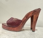 Vtg 70s Sz 6 Platform Disco Shoes Mules Sandals Wood Heel Sexy! Made In Brazil