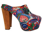 Enigma High Heel Shoes Wood Platform Hippie Floral Vtg Look Usa Sz Disco 70s
