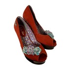Ruby Shoo Bright Orange Purple Heels Peep Toe Fabric Flowers Vintage 70s Size 7