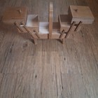 2 Vintage Wooden Sewing Accordion Fold Out Sewing Box