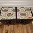 Vtg Sewing Box Tapestry Wood Accordion Sewing Box Floral 2 Tier Solid Clean Euc