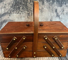 Looking for Vintage Accordion Fold out Solid Wood Sewing Box?