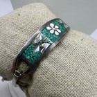 Vintage Mexico Silver Flower Abalone Inlay Bangle Hinged Bracelet Panel