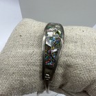 Vintage Silver Tone Multi Alpaca Mexico Hinged Abalone Bracelet 7 In
