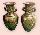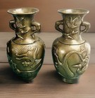 2 Antique ?vtg Rare Japanese /chinese Solid Brass Vases Hand Made Birds Dragon